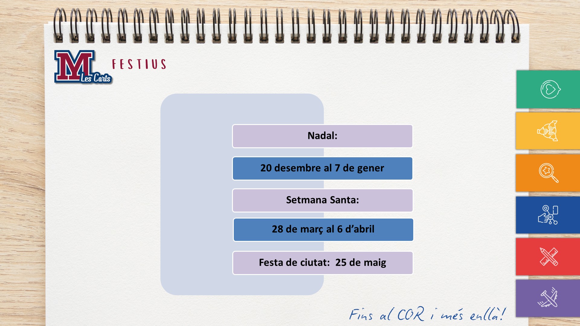 L’horari d’aquesta etapa és de 8.00 a 14.30 h